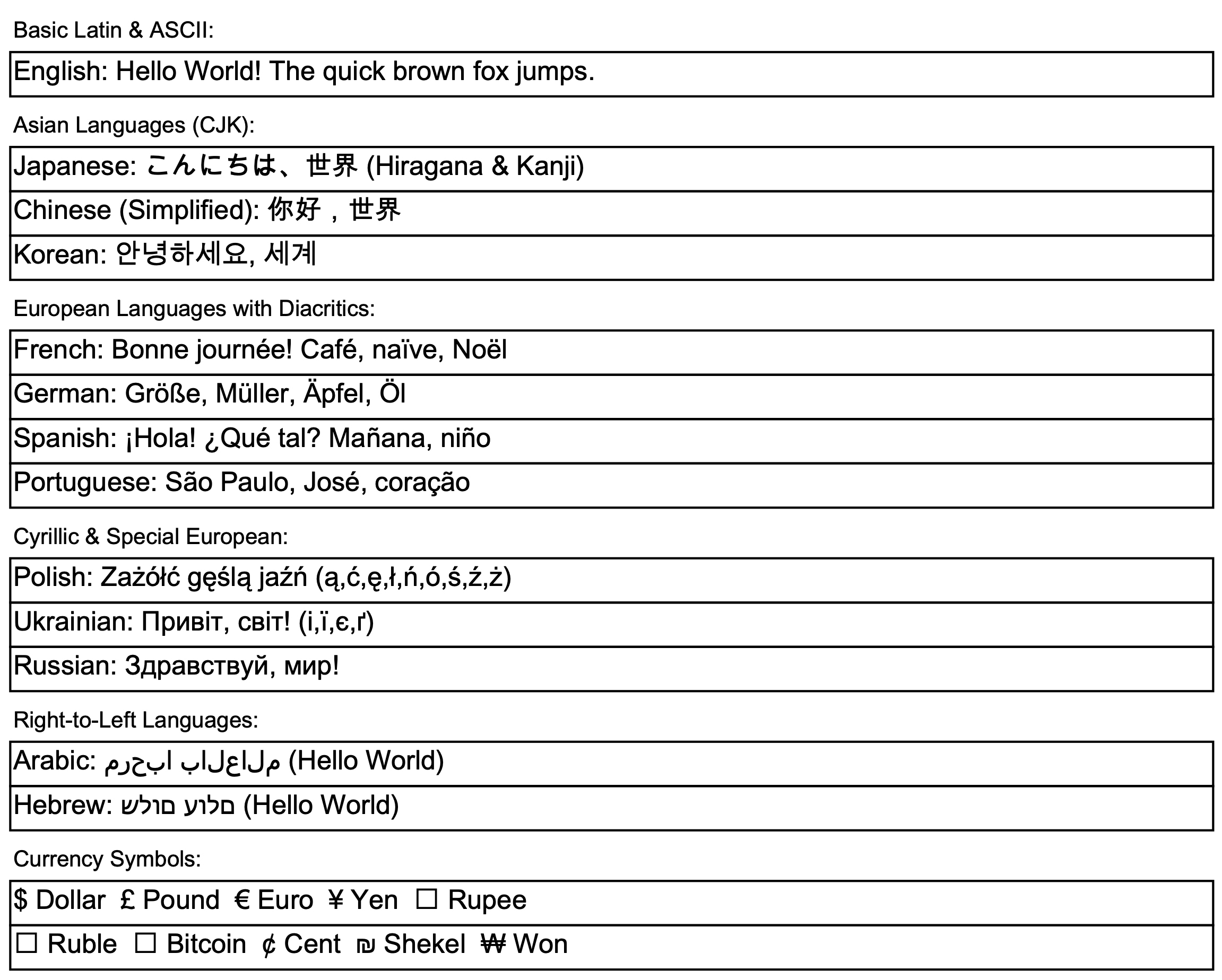 // Japanese, Arabic, Hebrew, Mathematical symbols - ALL WORKING!