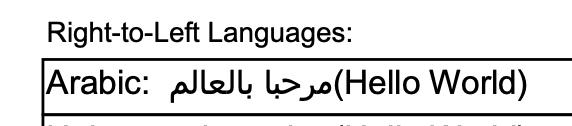 - Shows proper right-to-left rendering
