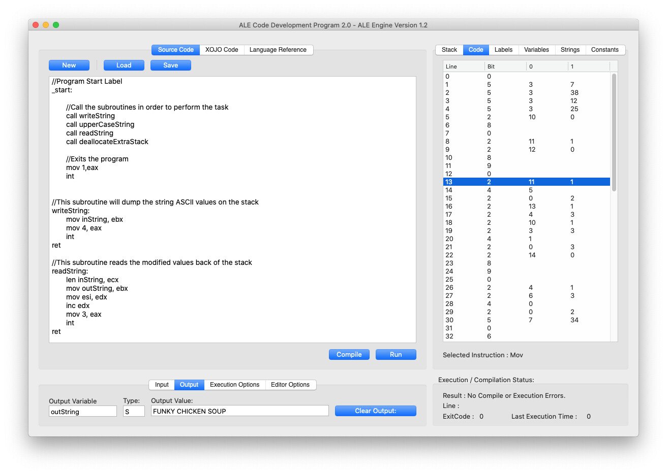 //This runs the ALE Engine with the compiled program