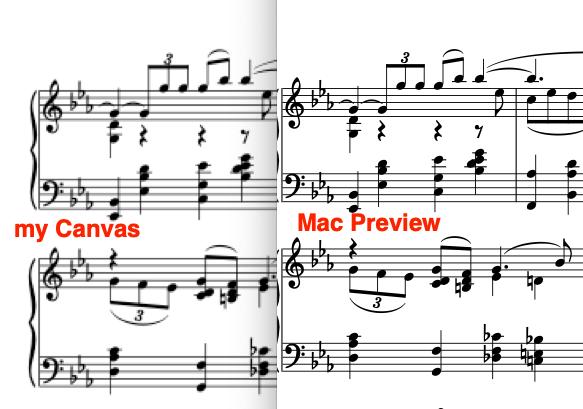 This image shows my canvas next to Mac’s Preview of the same PDF page. Is there something in the graphics object that I need to set up before drawing? How can I get the good quality of Preview. Am I missing something obvious? I can provide more details but the above code is where the drawing is done. Perhaps there’s something in MBS that I’m missing.
