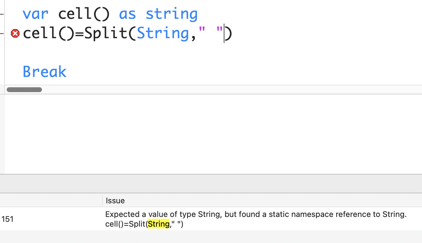 so I want to split this field with cell()=split(field.stringvalue,” “) to have a cell(0) and cell(1) with a value.