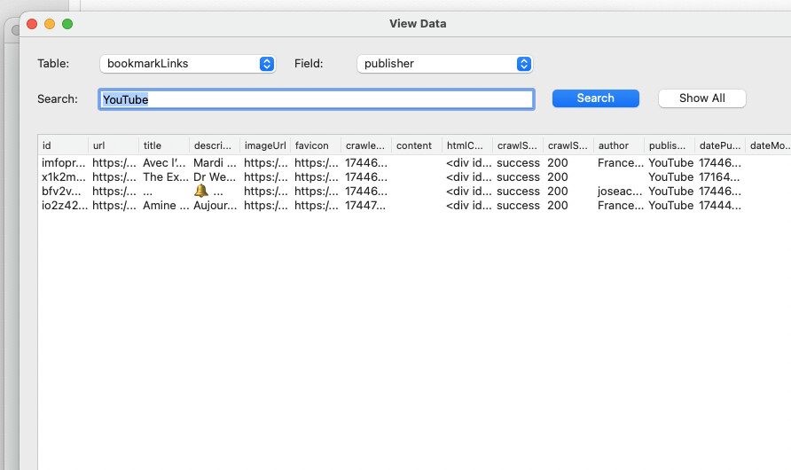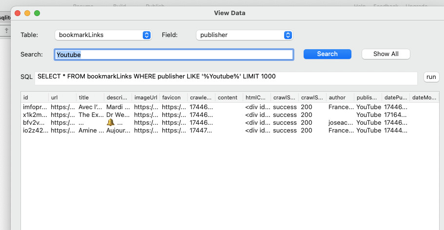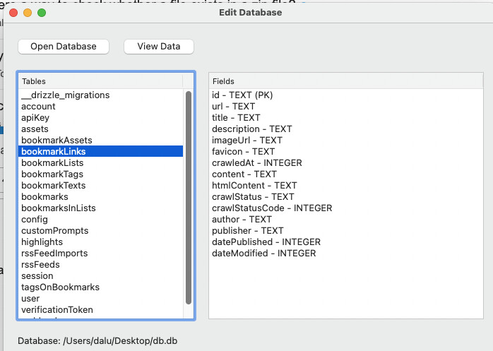 open a sqlite db (here are screens from a complex react native app to manage bookmarks and assets)