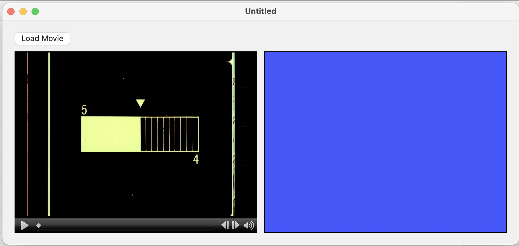Load a movie and play it, then stop it. As you can see below, the movie player shows the frame you stopped on. The picture is updated and it displays in the canvas but it only shows the blue default state for the movie, not the frame: