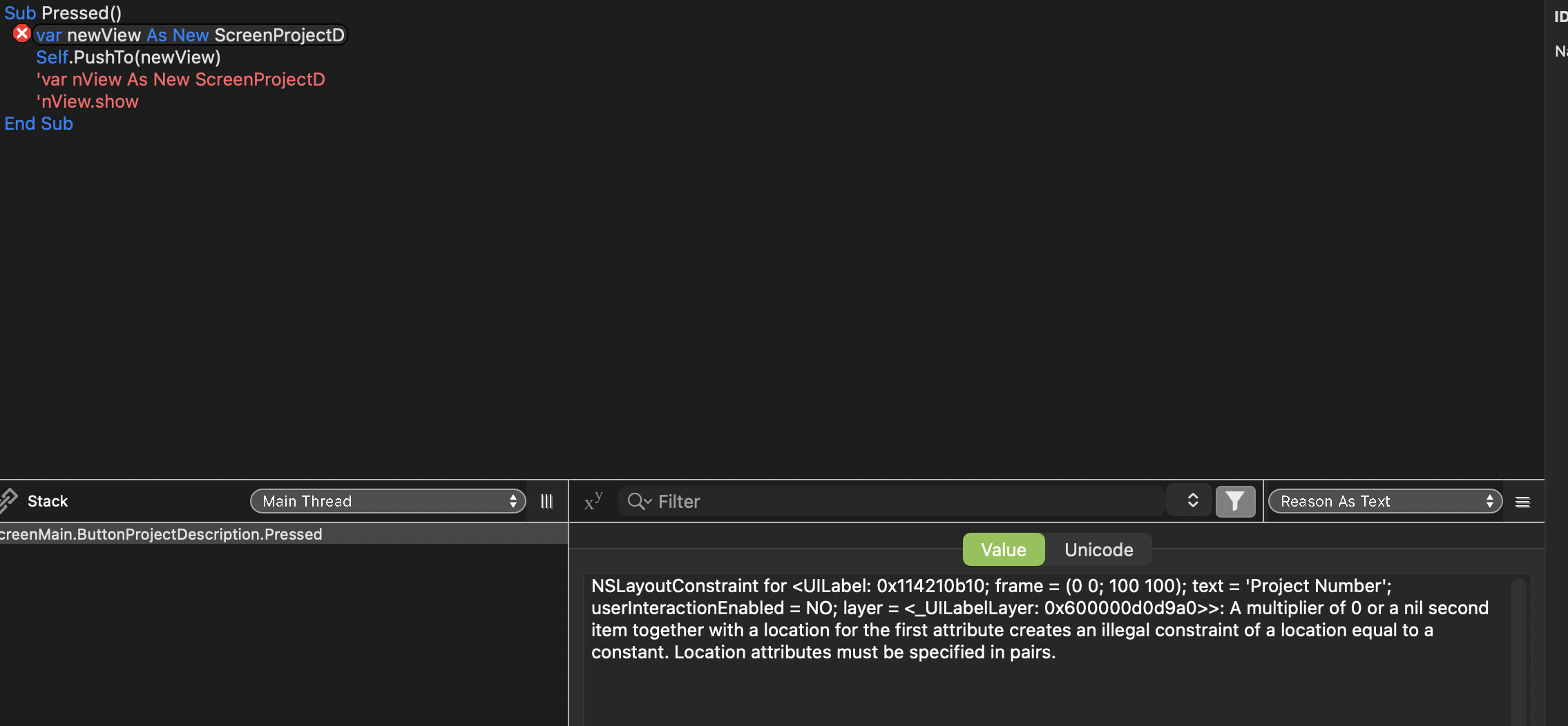 Looks like it says that a label on the screen has an invalid constraint for its position.