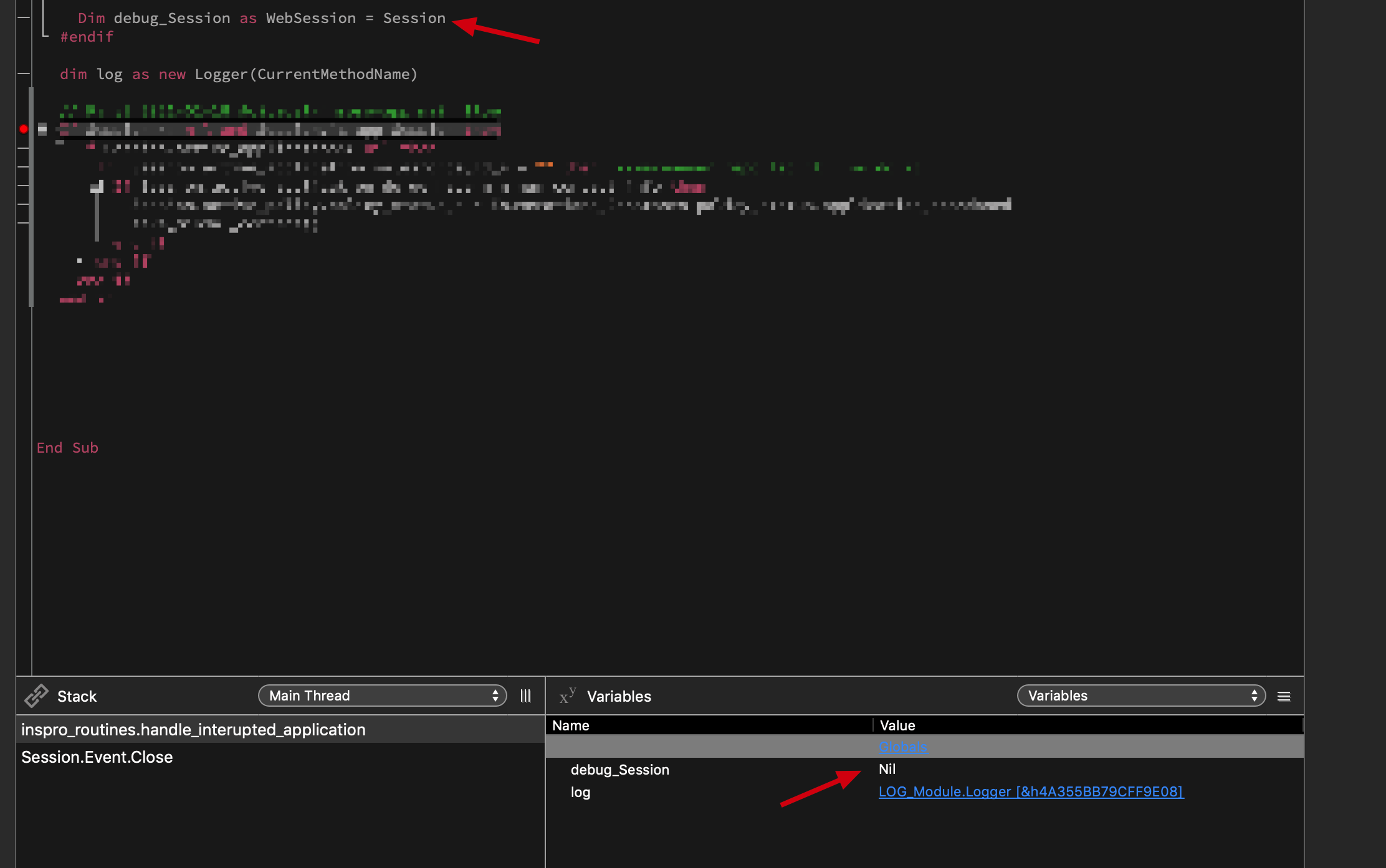 in a function, called from WebSession.Close() it doesn’t have access to the “Session” object. It’s NIL.