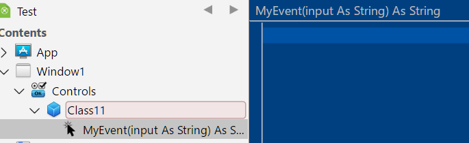 I’ve seen that it’s possible to create an Event in which I can specify the parameters and the output variable, but I can’t write the code inside.
