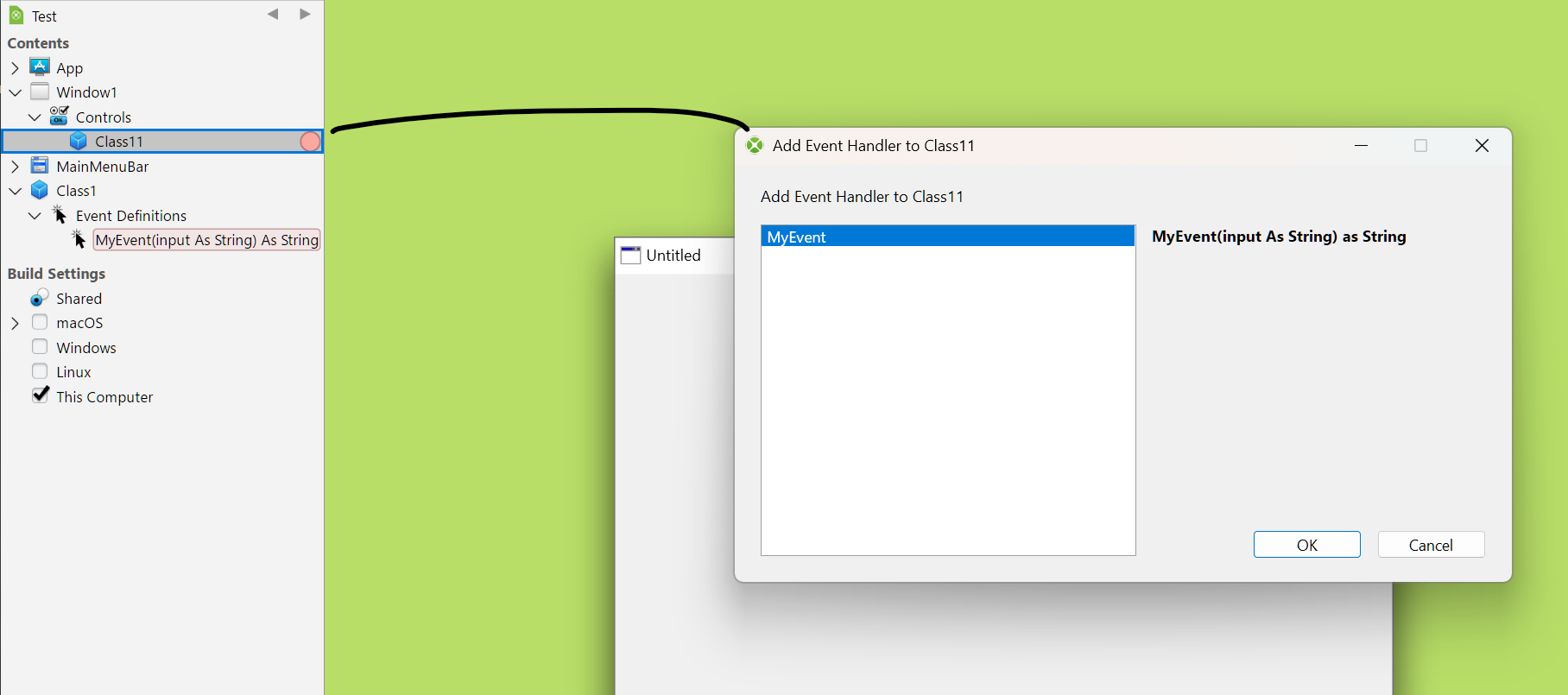 you can hold an class object also in a property of a window, but its by default nil and have to be created in the openinh event once with the new keyword.