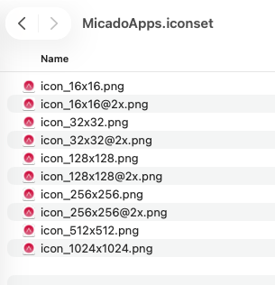 I exported all formats renamed them correctly and created the App.icons file with Terminal: