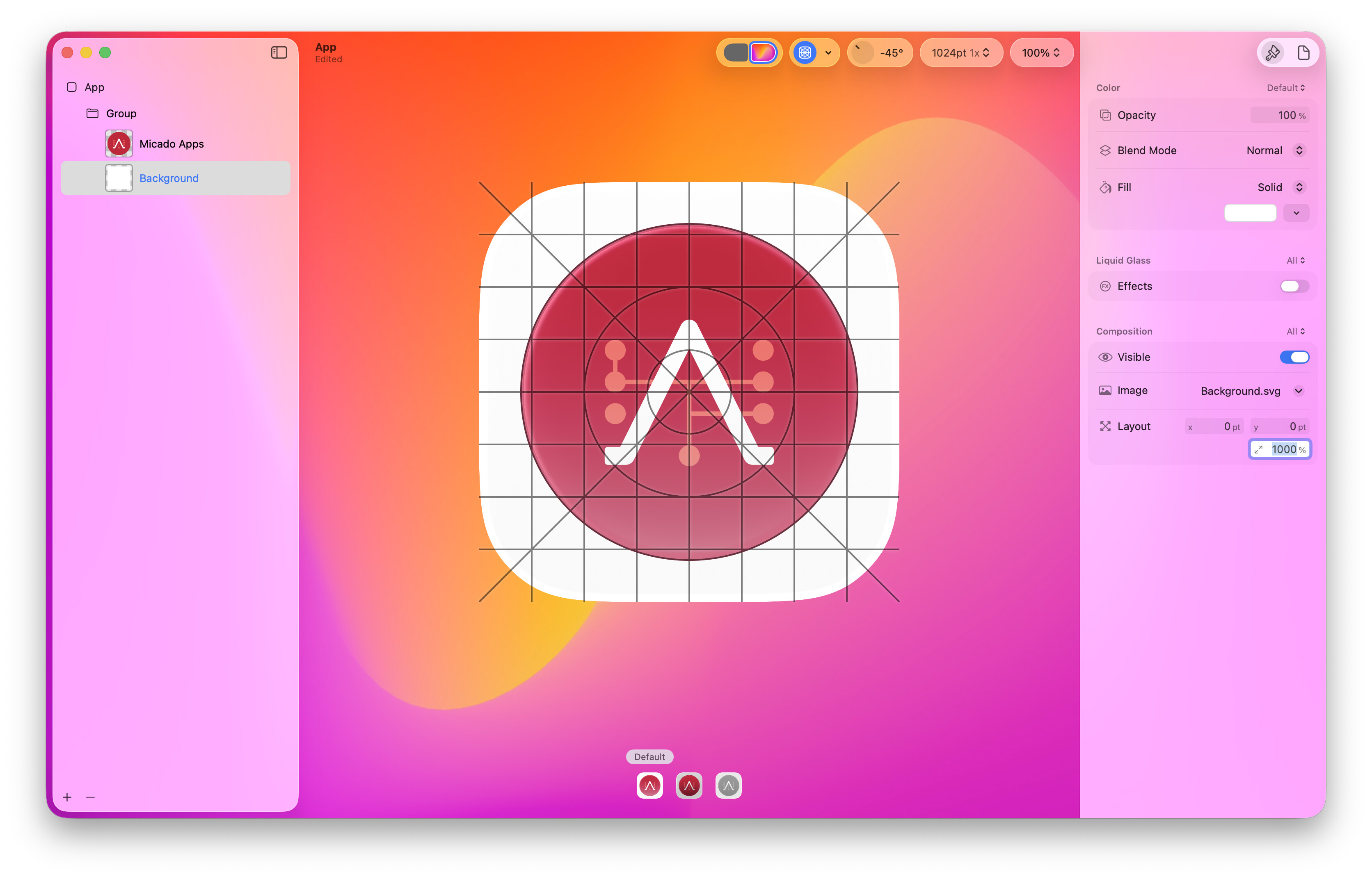 I understand, but I think that may be the reason you always see a border now. I have only one later, the icon, and when I set the layout to 249% if fills the entire squiricle, no border at all. And when I build the icon in the Finder has no border.