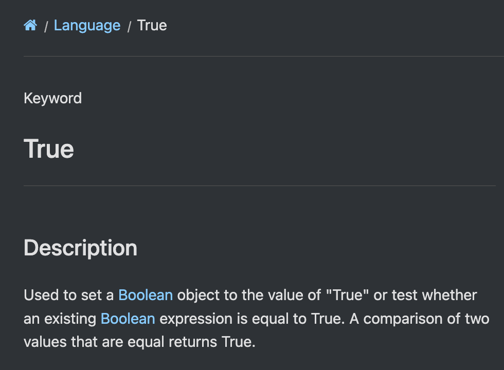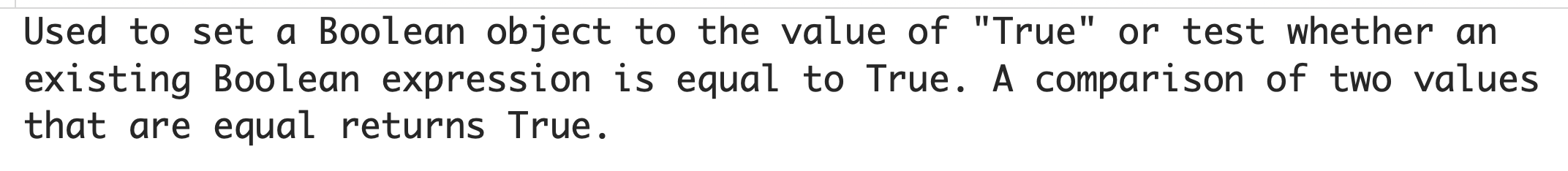 In this case the Help read True and display a text about True, not about Return True who is a different thing…