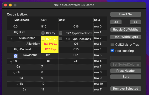 Yeah, I’ve looked into using NSTableViewMBS, but I do a lot of custom drawing in my listboxes and, from what I’ve seen in the examples, expanding and collapsing rows is kinda glitchy with the NSTableView.