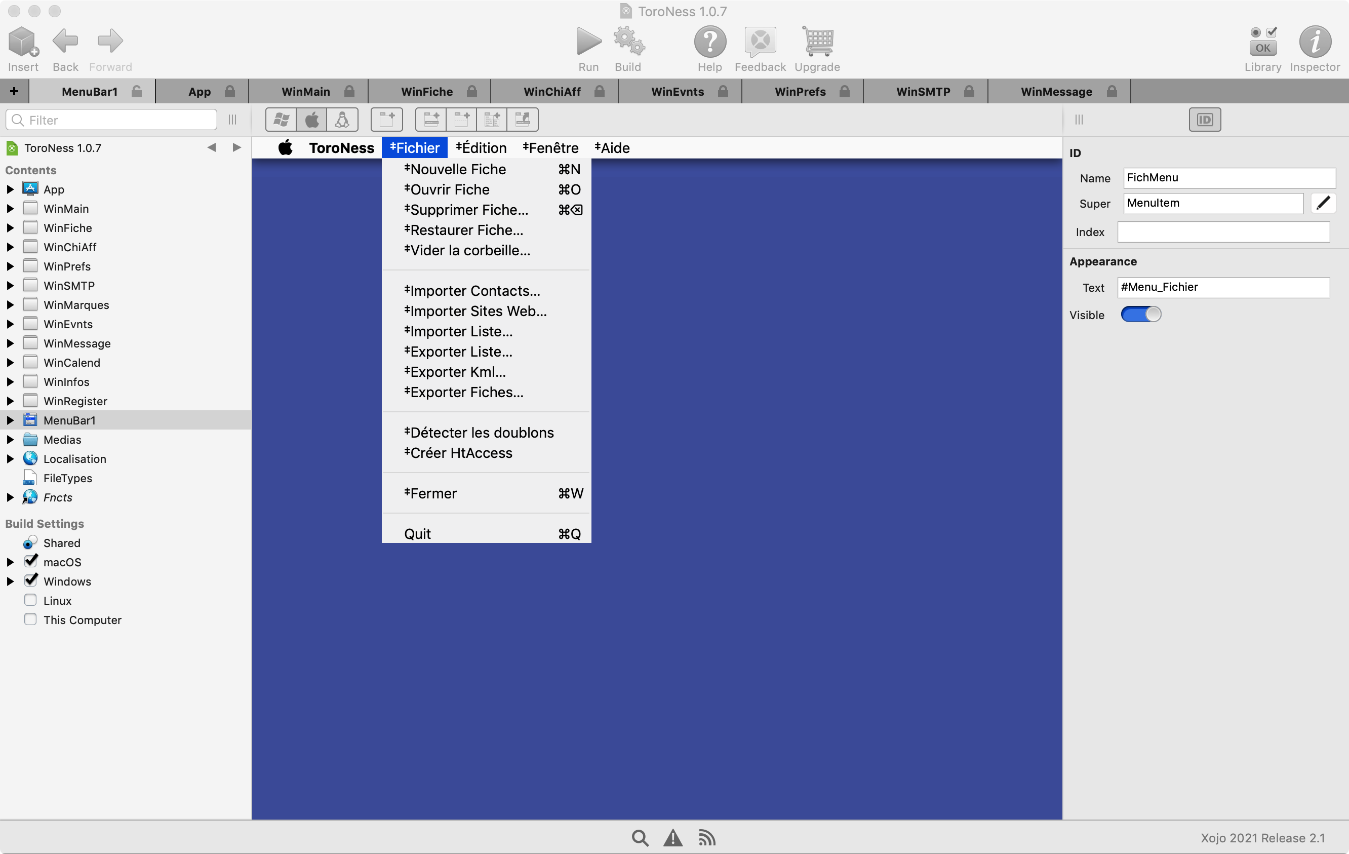 In last Xojo & Big Sur, a currently loaded project (created with 2015r1) show Quit in French, but I was not able to reach where in my project the French sentence is…