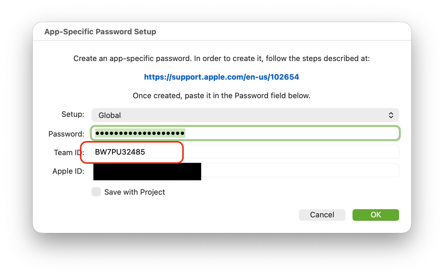I have setup the notarize panel with the app specific password and developer id