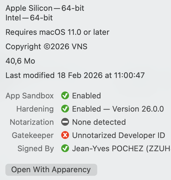 if I look at the xojo build app with the Apparency app it gives me this message: