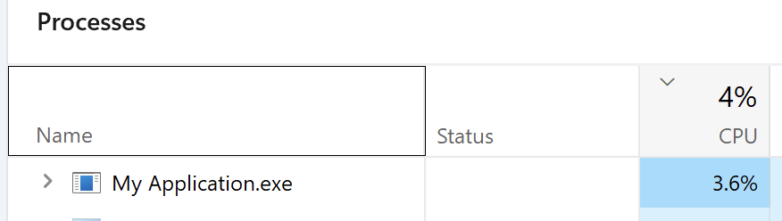 The app is basically idle: using almost no CPU, with CPU usage mostly sitting at 0%, occasionally spiking up to 3%: