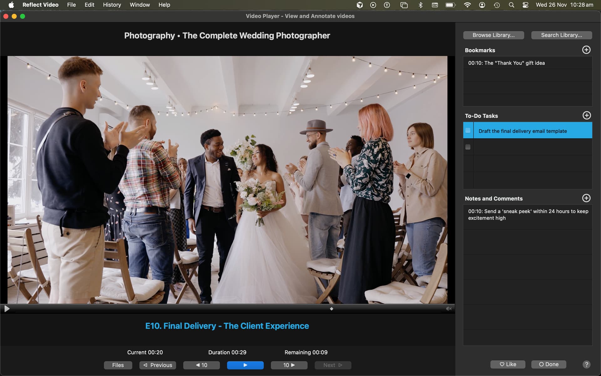 On the video player, you can add bookmarks, to-do items and notes, each with timestamps that return to that place in the video.