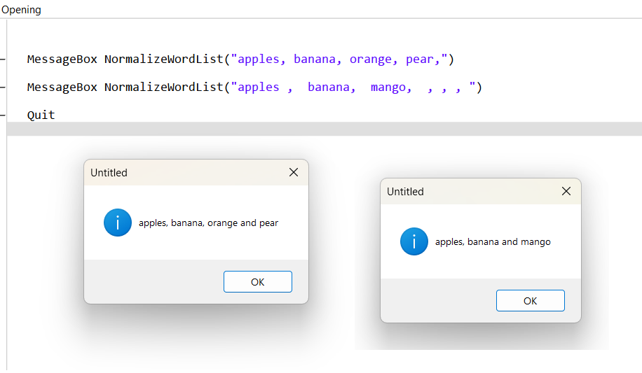 Public Function NormalizeWordList(list As String, serialComma As Boolean = True) As String
