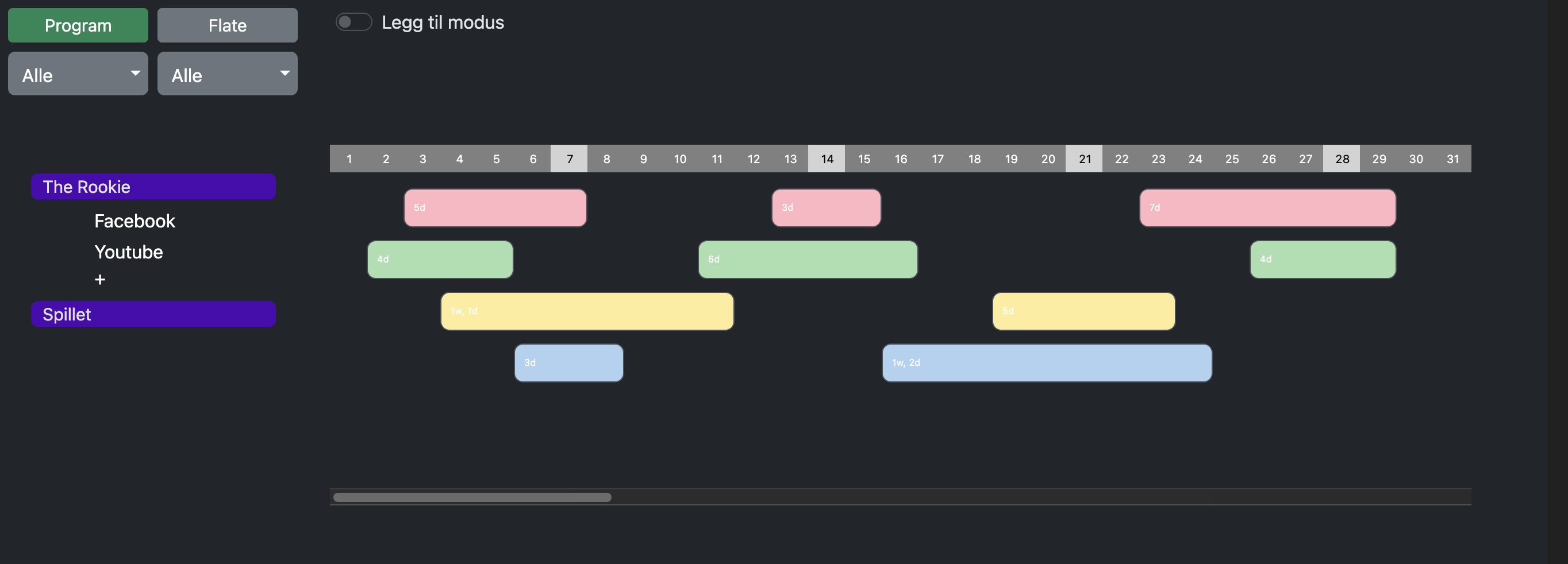 Have a look at the picture, and imagine the scrollbar gone, how would you give the user the clearest way of scrolling. In this example, which is a mockup for a media planning tool. (to finally get rid of separate excel files…) the edge can be quite far away, like a year of planning… so how to tell, how to scroll…
