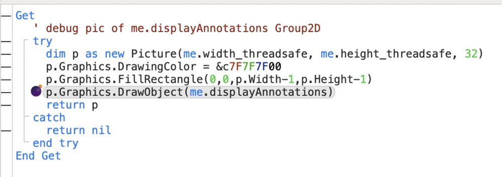 i don’t understand: me.displayAnnotations is a regular property containing a group2D. The computed property that crashed is the one shown in the screenshot, see the Get at the top.