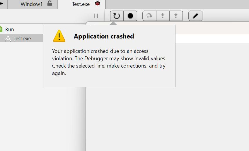 This should crash the Debug app (and it does), but it should not also cause the IDE to crash (but it does).