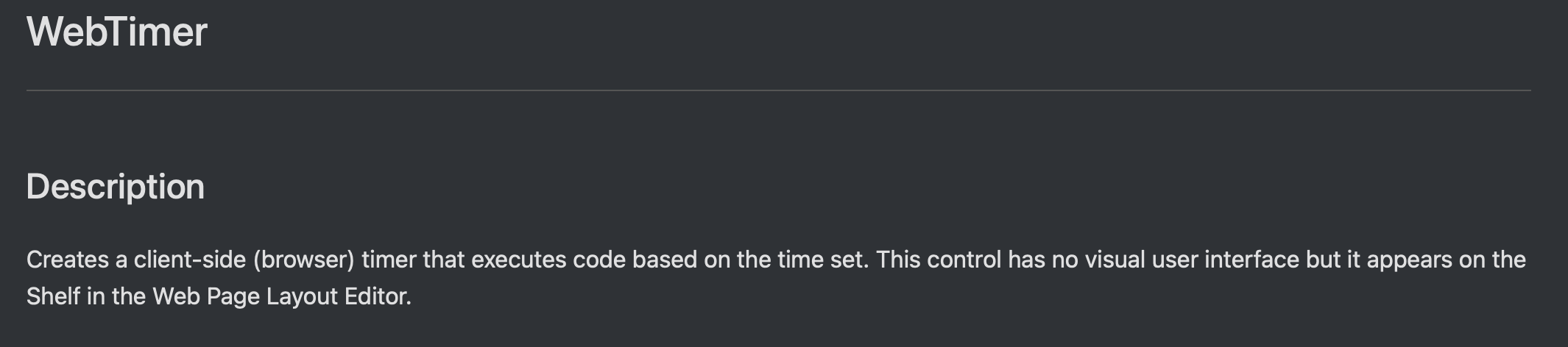 Edit⦠why does WebTimer.CallLater even exist? Itās not like Timer.CallLater isnāt available to web projects.