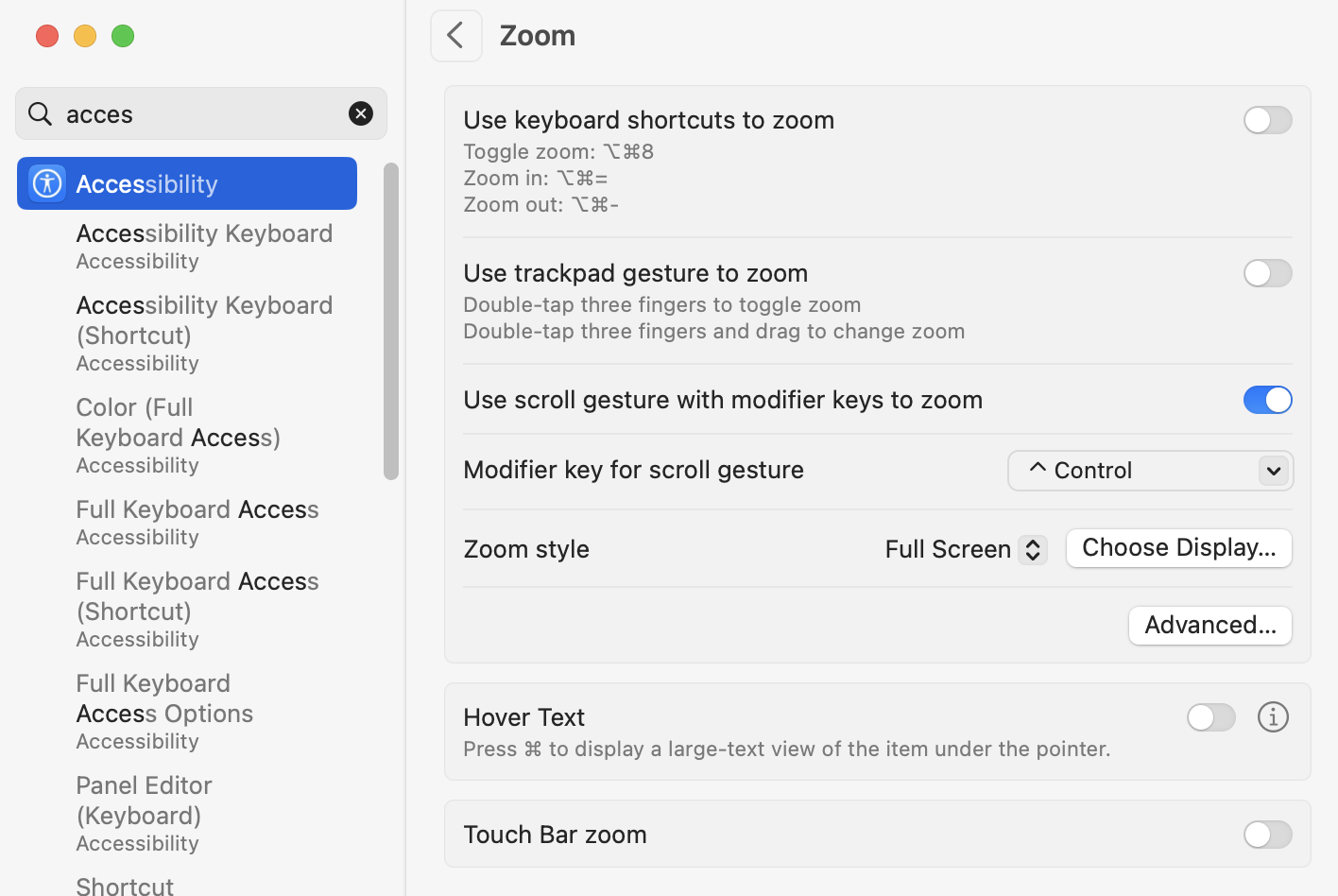 Control+Two Fingers (up | down) do nothing in Firefox | Finder | TextEdit…